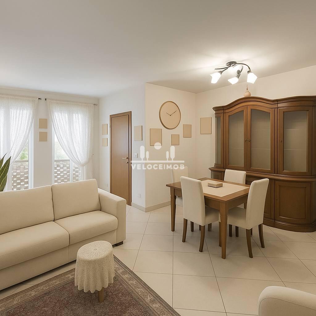 * Ingresso con ampio soggiorno e cucina a vista * 2 camere da letto (di cui 1 matrimoniale con bagno privato) * 2 bagni * Spazioso ripostiglio e area lavanderia